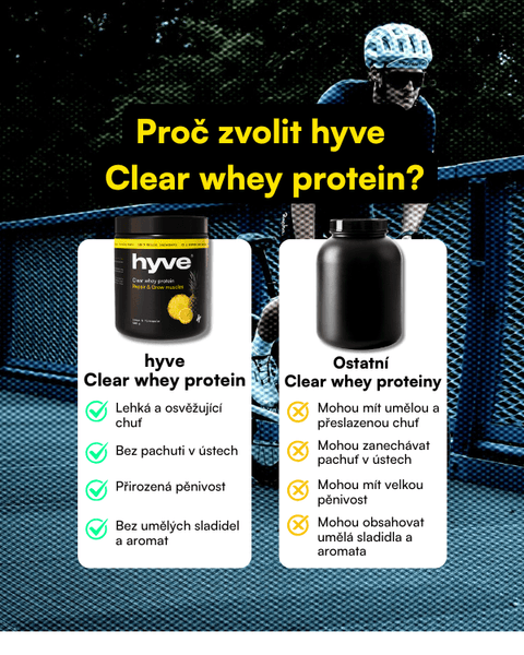 V hyve Clear whey proteinu najdeš jen čisté přírodní ingredience – bez umělých sladidel, barviv a dalších zbytečných aditiv, jako jsou zahušťovadla. Věříme v sílu jednoduchého složení, které respektuje tvoje tělo i výkon. Chuť i funkčnost jsou výsledkem pečlivě vybraných přírodních surovin – nic víc, nic míň.