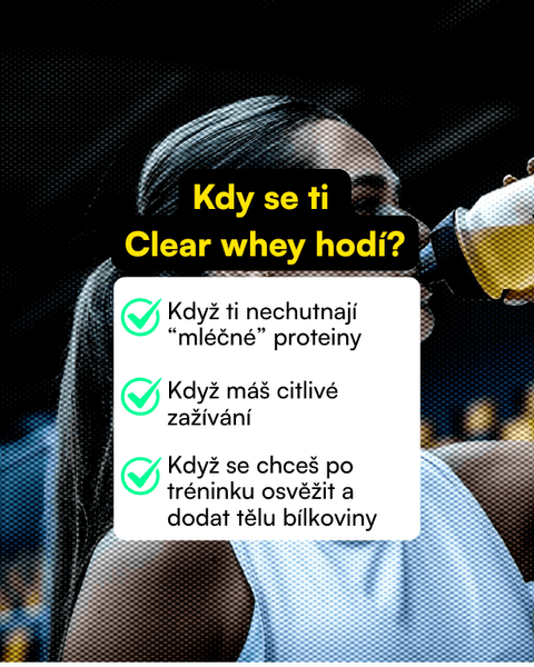 Clear whey je čirý syrovátkový protein bez typické mléčné struktury. Díky těmto vlastnostem chutná jako ovocná šťáva.
